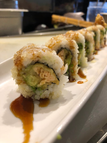 Salmon Tempura, Avocado, Crunchy Batter, Sweet Eel Sauce